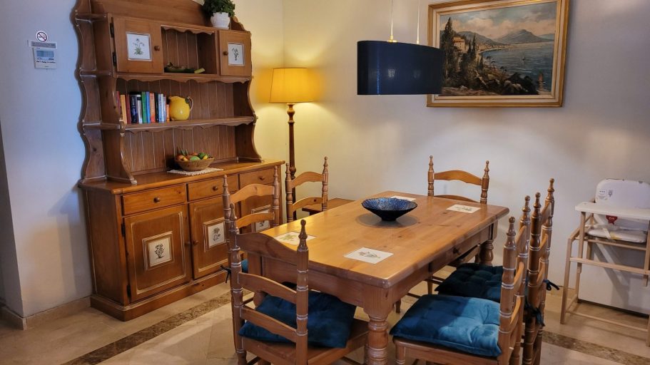 Tisch für 4 Personen unter der Loggia im Erdgeschoss