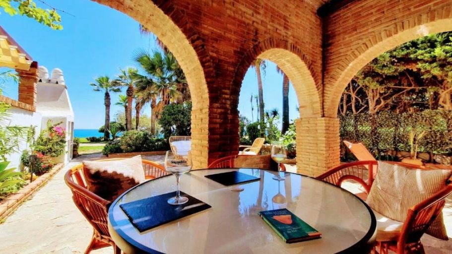 Maurische Architektur ... Das Ferienhaus Loma del Rey 56 liegt in der idyllischen Urbanisation Loma del Rey in La Alcaidesa, einer grünen Küstenlage in erster Strandlinie zum Meer mit direktem Strandzugang, abseits vom Verkehrslärm.